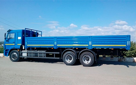 - Модификация 65117-23-А4 представляет собой авто с металлическими откидными бортами, оснащенное тентом либо каркасом. Грузоподъемность автомобиля составляет 11,6 тонн, вместимость кузова 36,5 кубов. Класс экологической безопасности соответствует стандарту Евро-4.