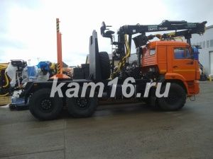 Гидрманипулятор ОМТЛ-97 устанавливается за кабиной или на задней части грузовой платформы автомобиля КамАЗ