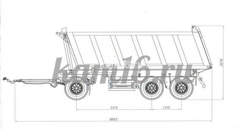 Прицеп самосвал трехосный двухскатный для перевозки сыпучих грузов