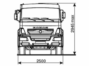 Шасси 6*4, длина рамы 5 970 мм, межосевое растояние мм, грузоподъемность 12 тонн