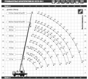 Описание комплектации а/м | г/п 32 т, длина стрелы 31 м, противовес |